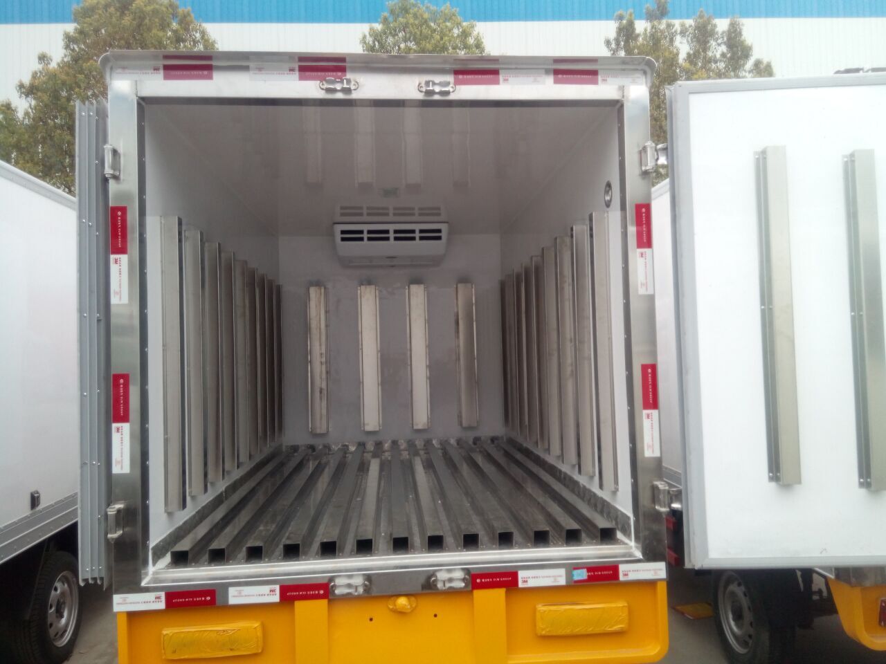 1、分片拼裝的“三明治”板粘接式,目前國(guó)內(nèi)較大的冷藏車生產(chǎn)企業(yè)都采用這種技術(shù),利用這種技術(shù)生產(chǎn)的冷藏車隔熱性能較高。