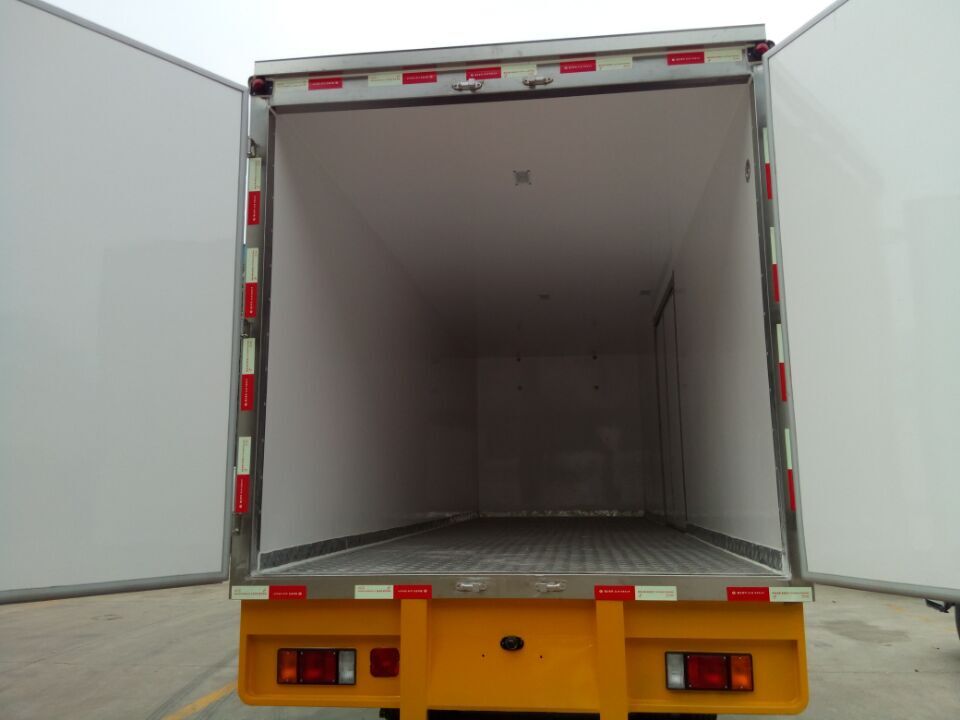 程力專用汽車股份有限公司,引進(jìn)目前國際最先進(jìn)冷藏車生產(chǎn)技術(shù)并斥巨資購置先進(jìn)的發(fā)泡成型設(shè)備和18米大型復(fù)合板材生產(chǎn)線,制造出新一代冷藏保溫車。生產(chǎn)的冷藏車廂體內(nèi)外壁板選用優(yōu)質(zhì)的玻璃鋼、不銹鋼或彩鋼板;中間保溫材料選用200px厚進(jìn)口聚氨酯擠塑板;廂體周邊鋁合金包邊;底板采用整體現(xiàn)澆玻璃鋼。采用新技術(shù)、新工藝制造的冷藏車具有保溫性能好、外型美觀、整體質(zhì)量輕、強(qiáng)度高、無滲漏等特點(diǎn)。廂板耐沖擊性好,對(duì)大氣、水和酸、堿、鹽等介質(zhì)具有良好的耐腐蝕性和抗老化性。經(jīng)過優(yōu)化設(shè)計(jì),大大降低廂底板離地面高度,增大了車廂的有效容積,車輛行駛的安全性更高。廂底板選裝通風(fēng)槽,便于冷氣流通全車,并保持廂內(nèi)溫度均衡。冷藏機(jī)組有知名的國產(chǎn)與進(jìn)口機(jī)組選擇,溫度可達(dá)深冷要求,機(jī)組具有結(jié)構(gòu)簡單、操作方便運(yùn)行可靠、能耗低制冷量大,噪聲小安裝維護(hù)方便等特點(diǎn)。
