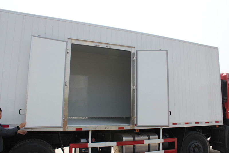 程力專用汽車股份有限公司,引進(jìn)目前國(guó)際最先進(jìn)冷藏車生產(chǎn)技術(shù)并斥巨資購(gòu)置先進(jìn)的發(fā)泡成型設(shè)備和18米大型復(fù)合板材生產(chǎn)線,制造出新一代冷藏保溫車。生產(chǎn)的冷藏車廂體內(nèi)外壁板選用優(yōu)質(zhì)的玻璃鋼、不銹鋼或彩鋼板;中間保溫材料選用200px厚進(jìn)口聚氨酯擠塑板;廂體周邊鋁合金包邊;底板采用整體現(xiàn)澆玻璃鋼。采用新技術(shù)、新工藝制造的冷藏車具有保溫性能好、外型美觀、整體質(zhì)量輕、強(qiáng)度高、無(wú)滲漏等特點(diǎn)。廂板耐沖擊性好,對(duì)大氣、水和酸、堿、鹽等介質(zhì)具有良好的耐腐蝕性和抗老化性。經(jīng)過(guò)優(yōu)化設(shè)計(jì),大大降低廂底板離地面高度,增大了車廂的有效容積,車輛行駛的安全性更高。廂底板選裝通風(fēng)槽,便于冷氣流通全車,并保持廂內(nèi)溫度均衡。冷藏機(jī)組有知名的國(guó)產(chǎn)與進(jìn)口機(jī)組選擇,溫度可達(dá)深冷要求,機(jī)組具有結(jié)構(gòu)簡(jiǎn)單、操作方便運(yùn)行可靠、能耗低制冷量大,噪聲小安裝維護(hù)方便等特點(diǎn)。