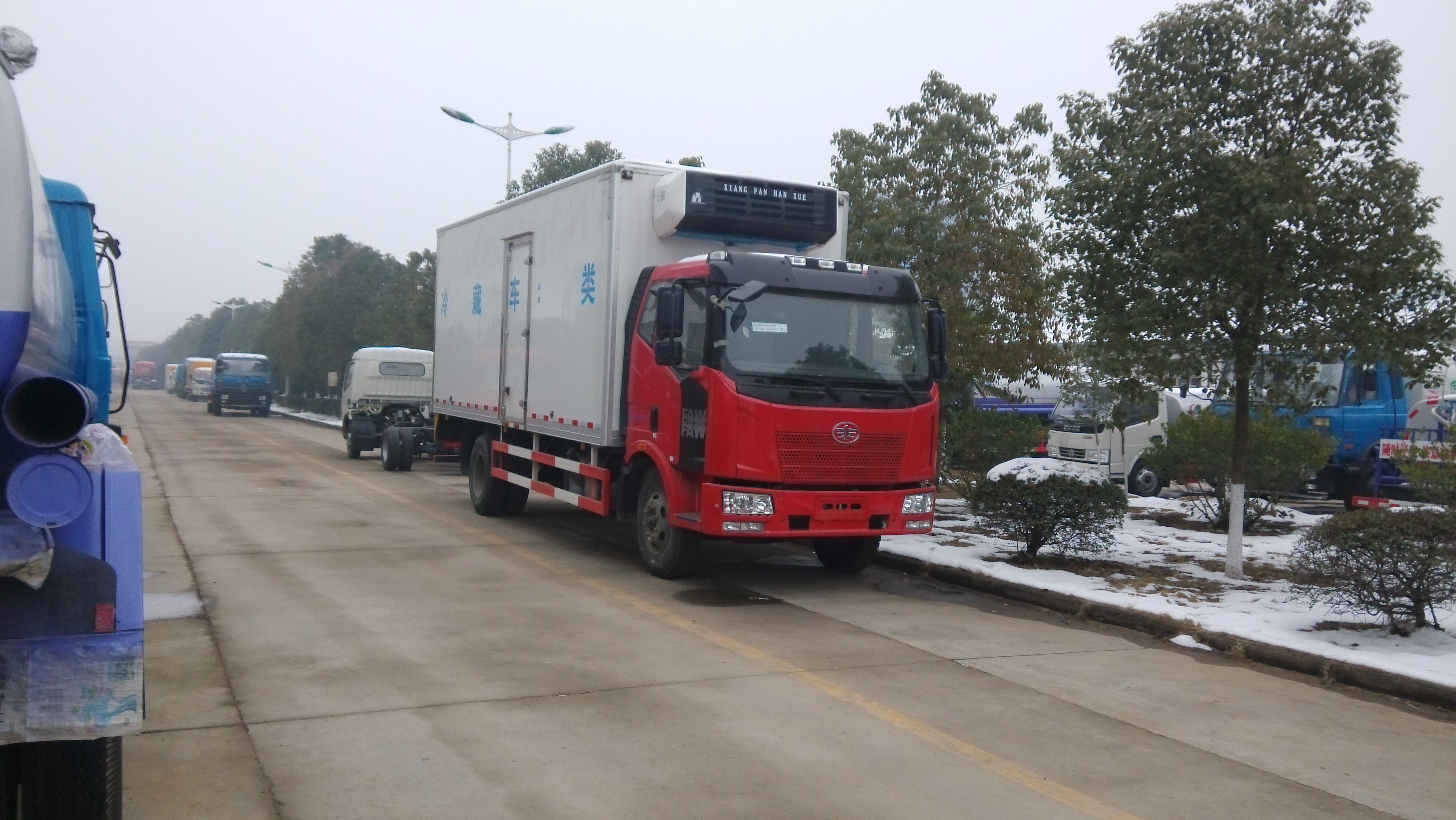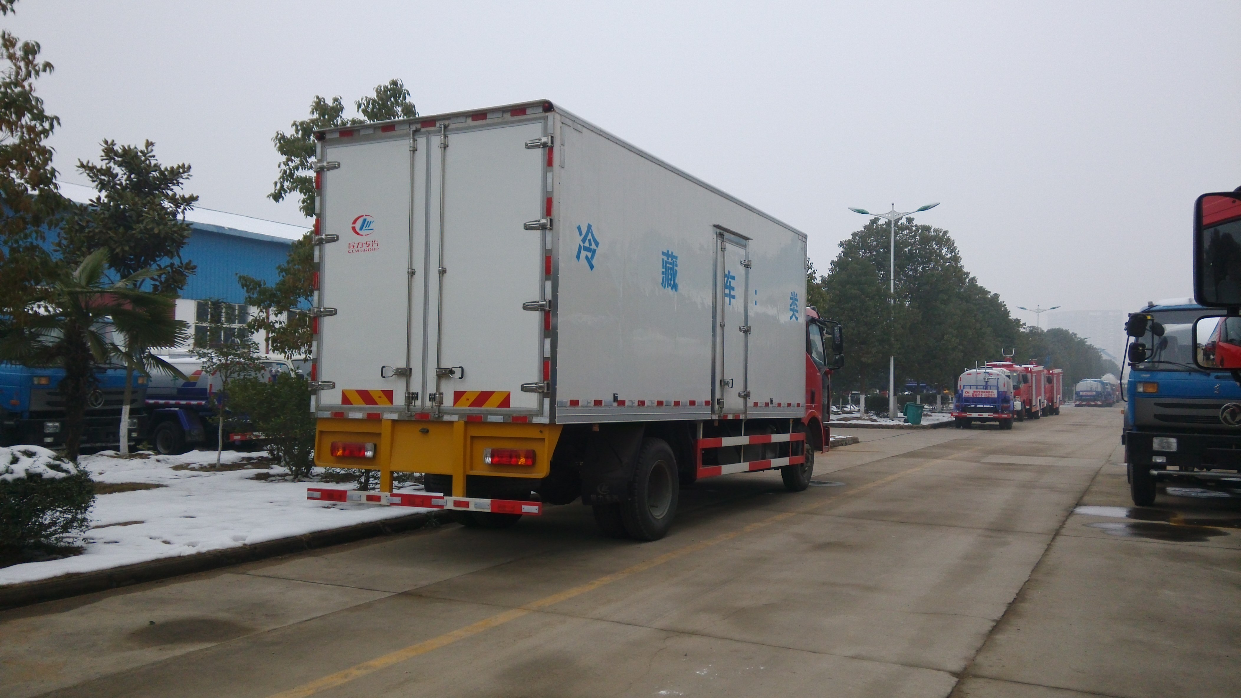程力專用汽車股份有限公司,引進(jìn)目前國(guó)際最先進(jìn)冷藏車生產(chǎn)技術(shù)并斥巨資購(gòu)置先進(jìn)的發(fā)泡成型設(shè)備和18米大型復(fù)合板材生產(chǎn)線,制造出新一代冷藏保溫車。生產(chǎn)的冷藏車廂體內(nèi)外壁板選用優(yōu)質(zhì)的玻璃鋼、不銹鋼或彩鋼板;中間保溫材料選用200px厚進(jìn)口聚氨酯擠塑板;廂體周邊鋁合金包邊;底板采用整體現(xiàn)澆玻璃鋼。采用新技術(shù)、新工藝制造的冷藏車具有保溫性能好、外型美觀、整體質(zhì)量輕、強(qiáng)度高、無(wú)滲漏等特點(diǎn)。廂板耐沖擊性好,對(duì)大氣、水和酸、堿、鹽等介質(zhì)具有良好的耐腐蝕性和抗老化性。經(jīng)過(guò)優(yōu)化設(shè)計(jì),大大降低廂底板離地面高度,增大了車廂的有效容積,車輛行駛的安全性更高。廂底板選裝通風(fēng)槽,便于冷氣流通全車,并保持廂內(nèi)溫度均衡。冷藏機(jī)組有知名的國(guó)產(chǎn)與進(jìn)口機(jī)組選擇,溫度可達(dá)深冷要求,機(jī)組具有結(jié)構(gòu)簡(jiǎn)單、操作方便運(yùn)行可靠、能耗低制冷量大,噪聲小安裝維護(hù)方便等特點(diǎn)。