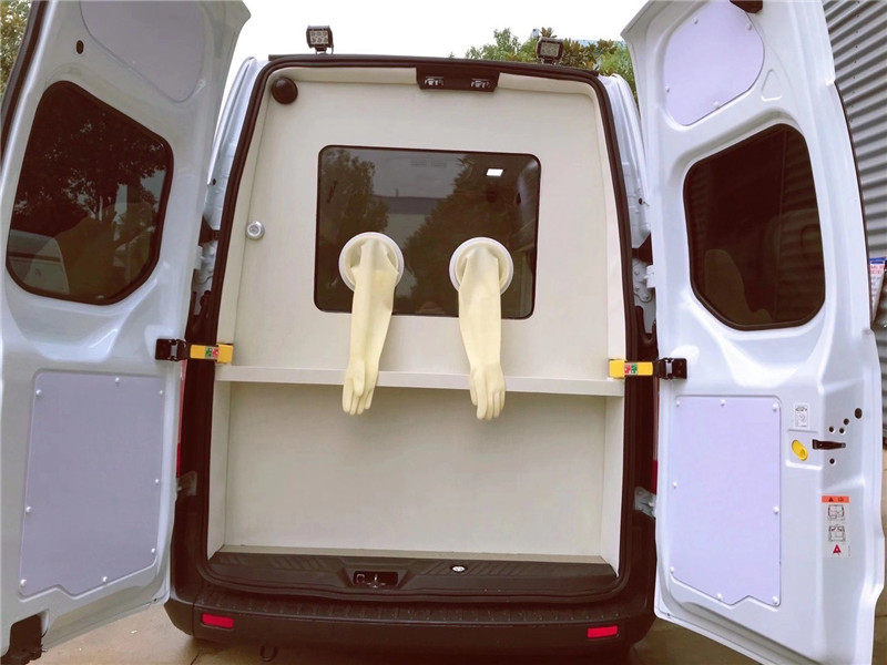 江鈴全順國六V362核酸取樣車內(nèi)部中隔板一套(復(fù)合材料,與駕駛艙隔離密閉),配備登記辦公柜1套,采樣工作臺1套,樣品處置柜1套,