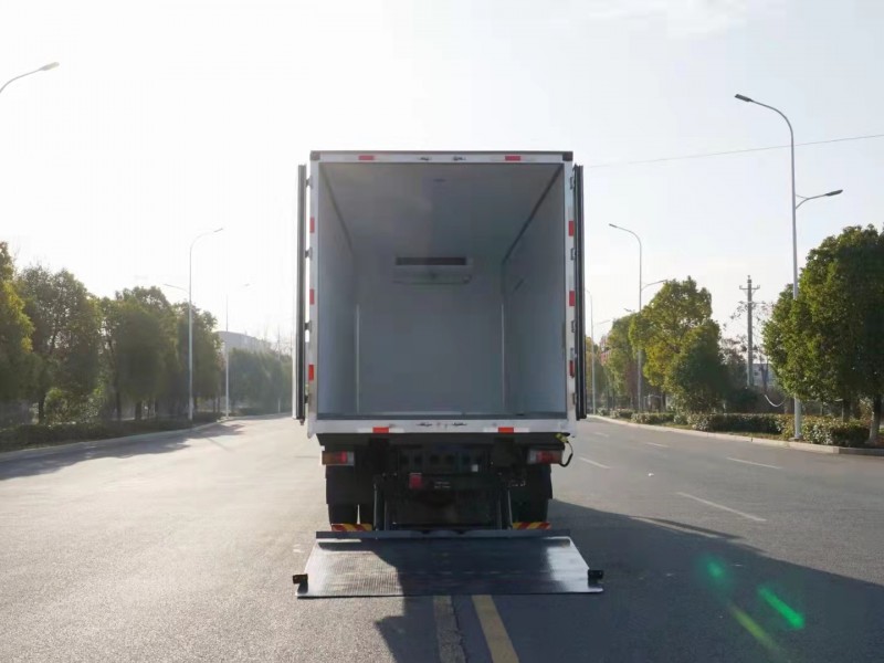 冷藏保溫車廂生產(chǎn)線是國際最先進(jìn)18米大型復(fù)合板材生產(chǎn)線,壓板臺(tái)面生產(chǎn)前機(jī)器自動(dòng)吸塵干凈,保證壓板機(jī)一次壓制成型,其生產(chǎn)設(shè)備及技術(shù)均領(lǐng)先同行業(yè)標(biāo)準(zhǔn),箱體外形美觀,整體質(zhì)量輕,強(qiáng)度高,無滲漏特點(diǎn),冷藏車箱體是采用國際通用三明治工藝+我廠專利木質(zhì)工藝(龍骨連接鑲?cè)氕h(huán)保防水木材起保溫耐腐蝕作用)、斷橋隔熱技術(shù)!保溫效果達(dá)到國家A級(jí)標(biāo)準(zhǔn)。冷藏箱體內(nèi)部選裝地板通風(fēng)槽,溫濕度記錄儀,肉鉤導(dǎo)軌,通風(fēng)布等專用配置。