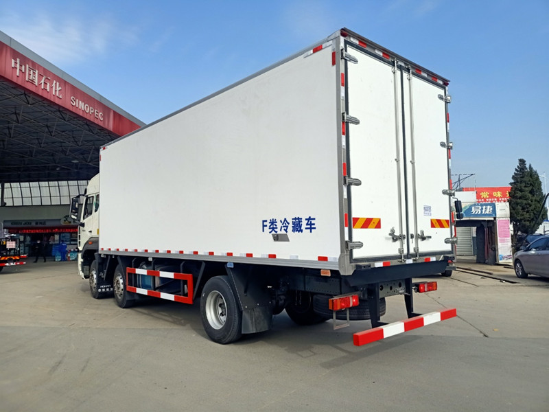 冷藏車箱體是采用國(guó)際通用三明治工藝+我廠專利木質(zhì)工藝(龍骨連接鑲?cè)氕h(huán)保防水木材起保溫耐腐蝕作用)、斷橋隔熱技術(shù),生產(chǎn)線是國(guó)際最先進(jìn)18米大型復(fù)合板材生產(chǎn)線,壓板臺(tái)面生產(chǎn)前機(jī)器自動(dòng)吸塵干凈,保證壓板機(jī)一次壓制成型,其生產(chǎn)設(shè)備及技術(shù)均領(lǐng)先同行業(yè)標(biāo)準(zhǔn),箱體外形美觀,整體質(zhì)量輕,強(qiáng)度高,無滲漏特點(diǎn),箱體堅(jiān)固耐用,保溫效果高,保溫效果達(dá)到國(guó)家A級(jí)標(biāo)準(zhǔn)。;箱體內(nèi)部吸選裝下沉式滿焊通風(fēng)槽,溫濕度記錄儀,肉鉤導(dǎo)軌等專用配置。制冷設(shè)備選擇美國(guó)開利S850,冷王T880獨(dú)立制冷機(jī)組,選裝凱雪1080非獨(dú)立冷機(jī)。制冷溫度最低可達(dá)-18度,可根據(jù)運(yùn)輸貨物要求進(jìn)行調(diào)節(jié)。