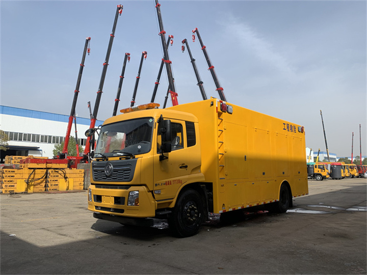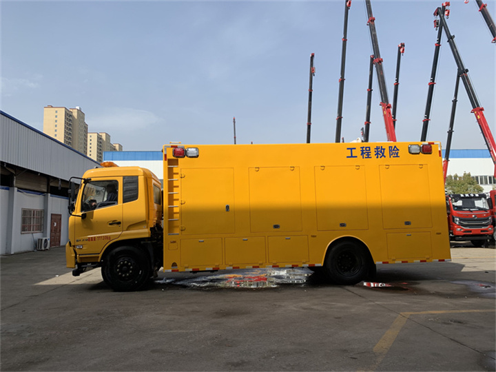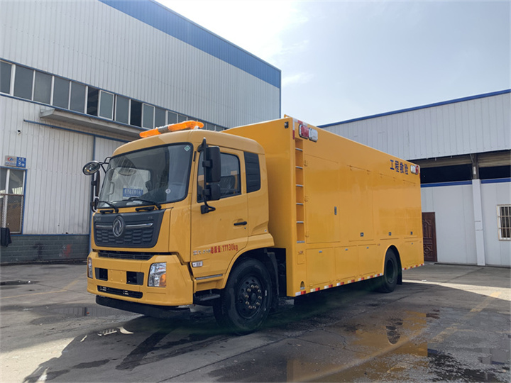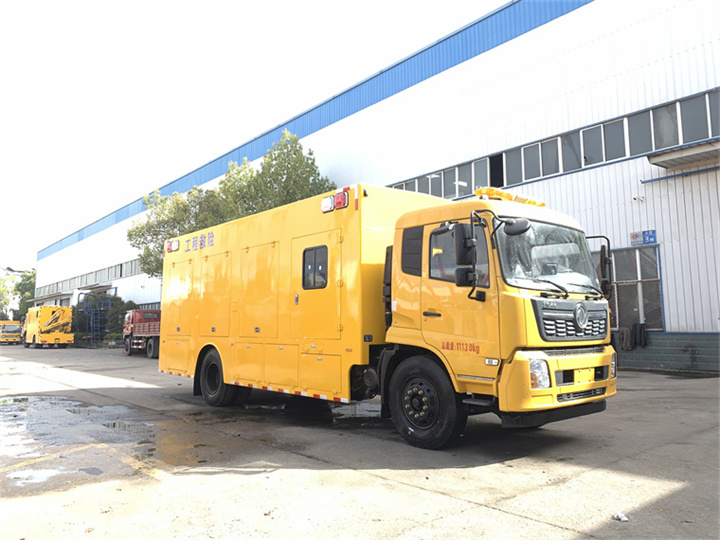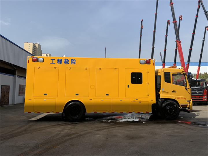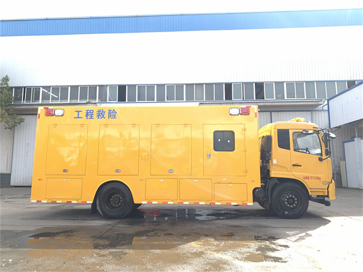東風(fēng)天錦移動供暖供熱車下裙配置鋁合金踏板 美觀方便,可承載300KG左右,正中裝有透視窗:發(fā)電機組檢查透視窗,立于地面即可操作,方便適時查看發(fā)電機組工作狀況百葉窗為發(fā)電機組進排氣處理,散熱能力強,操作方便簡單,可移動式應(yīng)急照明,方便臨時照明,滅火器:車載滅火器,設(shè)置在廂體內(nèi)和廂體下方便取用,可選裝煙霧報警系統(tǒng),液壓支腿:單腿承載5噸,減小輪胎壓力和板簧重量。