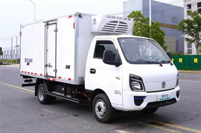 吉利鋒銳V5E純電動3米8冷藏車是一款純電動,上綠牌,免購置稅,城區(qū)不限行的新能源冷藏車,配備的是寧德時代66.84kWh磷酸鐵鋰電池組,可續(xù)航240公里左右,配備的是永磁同步電機,型號為TZ185XSMJ2,其峰值功率為90千瓦(122馬力),峰值扭矩則為255牛米。滿足一線,二線城區(qū)冷鏈物流配送,下面來看看這款3米8純電動冷藏車的配置和特點。