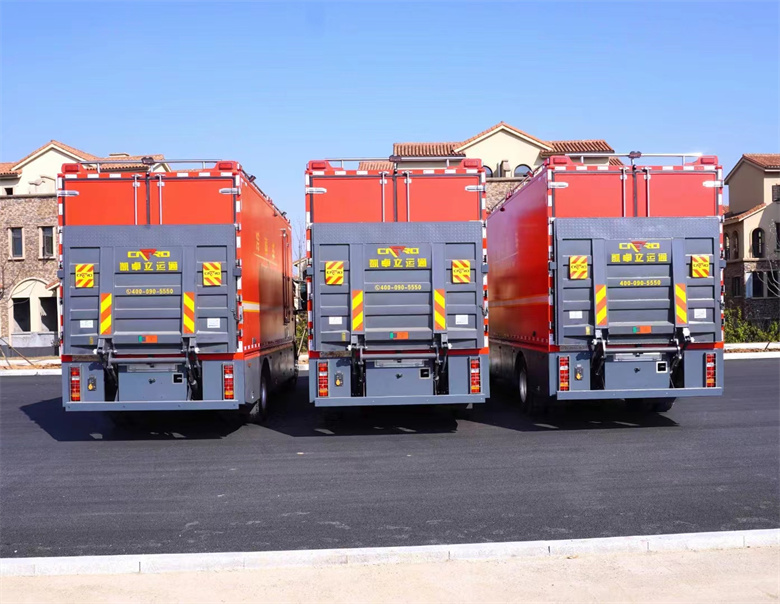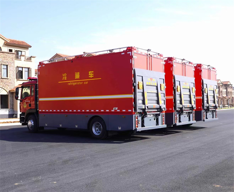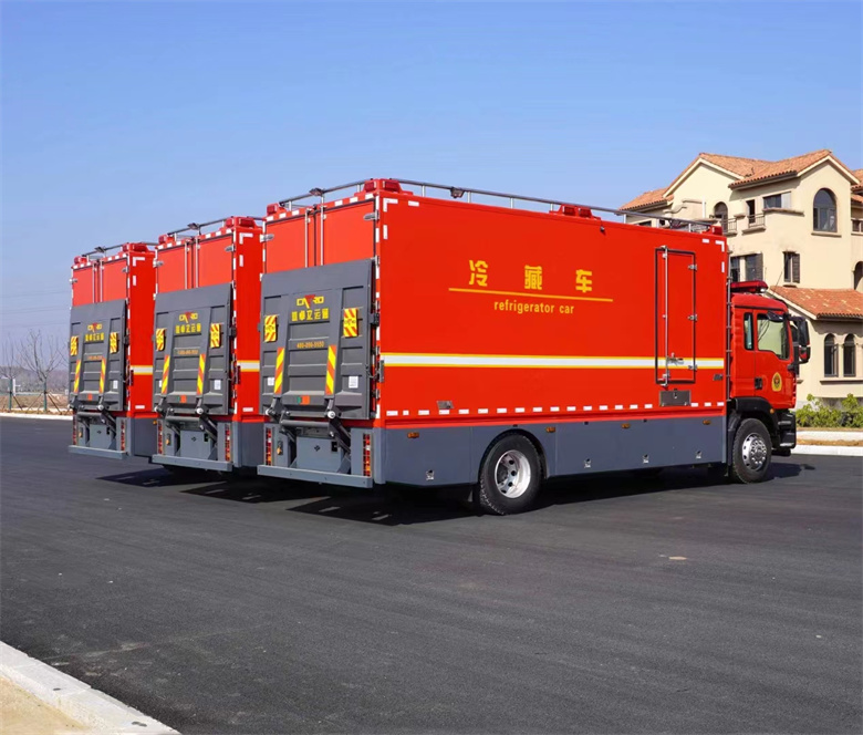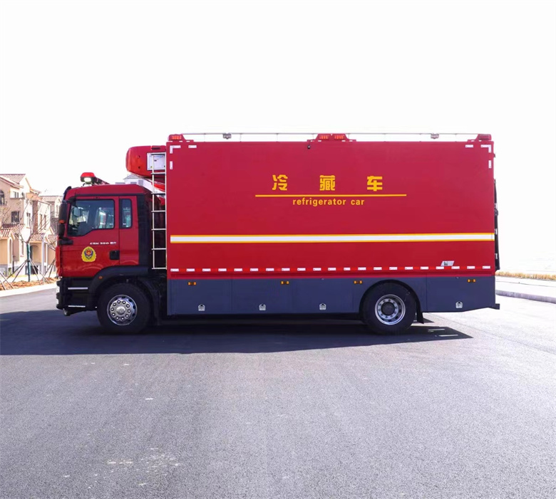 我公司生產(chǎn)的重汽汕德卡消防(應(yīng)急保障)6米8冷藏車廂體中間安裝有溫控隔溫板,多用途隔離,雙溫雙控,前面冷凍后面冷藏。兩側(cè)共配有8個應(yīng)急搶險專用箱??蓾M足消防救援后勤保障物資低溫運輸需求。滿足消防人員在外出任務(wù)時后勤可以得到保障。