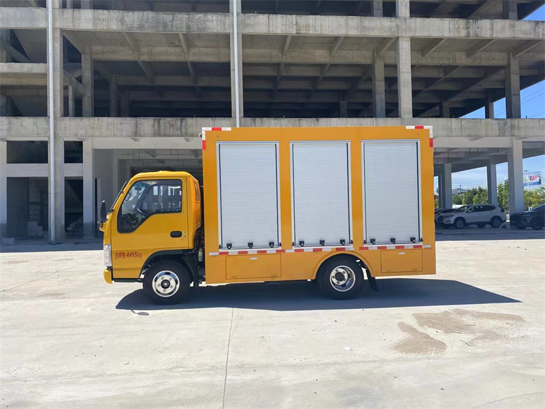 五十鈴鈴咖1000方大流量藍(lán)牌排水搶險(xiǎn)車單泵配40米排水 管(20米/根),水管直徑 DN200mm,水管材質(zhì)為滌綸長(zhǎng)絲編織,內(nèi)外涂耐磨防樹脂,耐磨、耐壓、防刺穿,可折疊卷起。軟管為快速接頭連接,操作方便。配備外接電源,箱內(nèi)配備滿足5KW功率輸出、電壓380V插座1只,220V通用插座1只??梢怨╇姾笝C(jī)使用或者別的電器件使用,車廂內(nèi)安裝LED照明燈。在啟動(dòng)發(fā)電機(jī)組時(shí)采用發(fā)電機(jī)組供電,發(fā)電機(jī)組停機(jī)時(shí)采用車輛直流電瓶電源供電,可實(shí)現(xiàn)便捷切換。車輛兩側(cè)各配四只共八只紅白爆閃警燈,對(duì)行人及過往車輛起到警示作用。