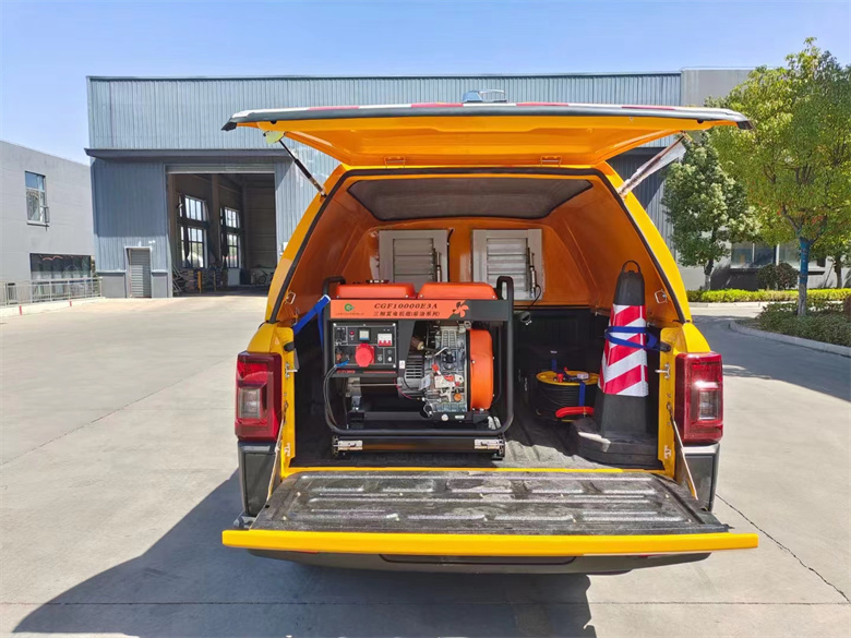 江鈴電動皮卡工程救險車標準配置:江鈴電動皮卡工程救險車車廂內(nèi)配備無刷發(fā)電機組,機組功率30KW,能滿足水泵全負荷長時間連續(xù)安全運行,額定頻率50HZ,額電壓220/400V。調(diào)速方式:電子調(diào)速、啟動電瓶,電瓶總閘。發(fā)電機組的底座油箱容積能保證發(fā)電機組全負荷運行8小時所用,安裝位置合理方便維護人員日常加油??刂葡到y(tǒng)可現(xiàn)實水溫、油壓、轉(zhuǎn)速、頻率,各項電壓、電流、功率等均可實現(xiàn)一鍵智能化,操作方便。