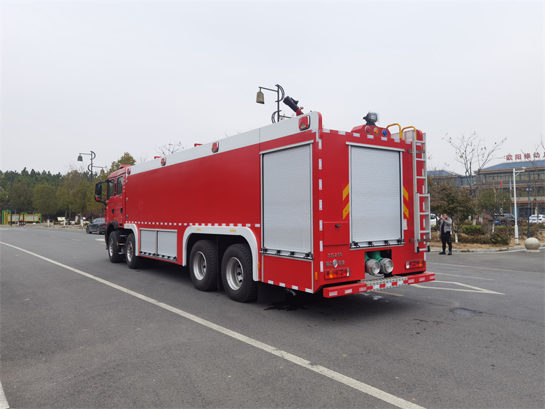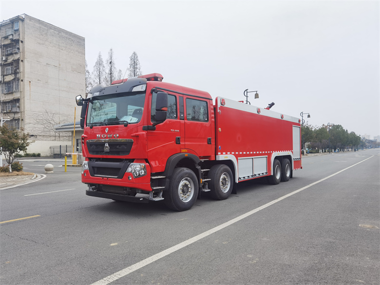 重汽豪沃25噸水罐消防車消防炮型號:PS80型消防炮,流量:80(L/s),射程:水≥80m,壓力:0.8MPa位置:位于水罐頂部??刂疲翰捎檬謩涌刂疲瑤фi止機(jī)構(gòu),方便操作。