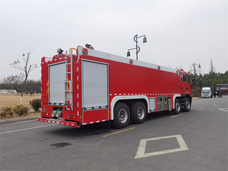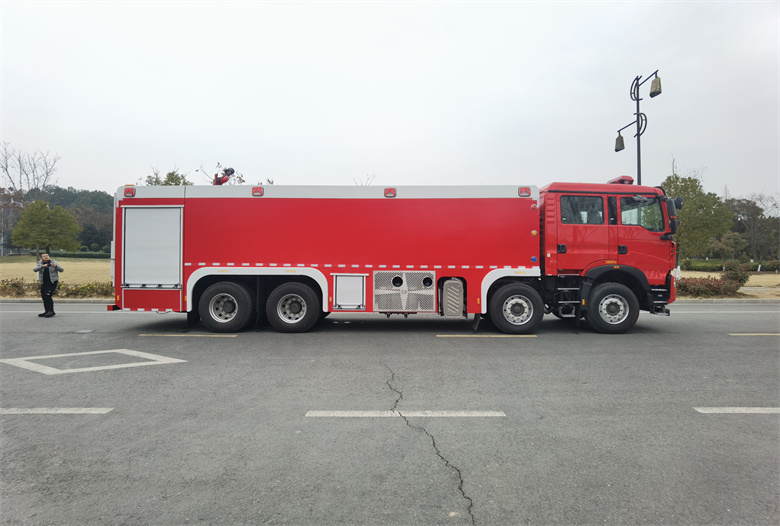 重汽豪沃25噸水罐消防車標(biāo)準(zhǔn)配置:重汽豪沃25噸水罐消防車水罐采用框架焊接,罐體內(nèi)設(shè)置縱、橫防蕩板,以減少車輛行駛過程中罐內(nèi)水對罐體的沖擊;罐體前后壁板折有梯形折筋,使罐體具有足夠的強(qiáng)度、剛度。罐頂設(shè)快速開啟式人孔,方便維修人員進(jìn)出。罐內(nèi)設(shè)有防止水泵吸水形成旋渦從而影響流量的裝置和濾網(wǎng)。罐內(nèi)設(shè)有不銹鋼浮球式液位指示器,可通過儀表板上液位表顯示罐內(nèi)滅火劑的容量;罐底設(shè)有帶球閥的排污口。罐體設(shè)有1個76mm溢流管,車廂兩邊各1個76mm注入口,便于其他車輛供水加液之用。