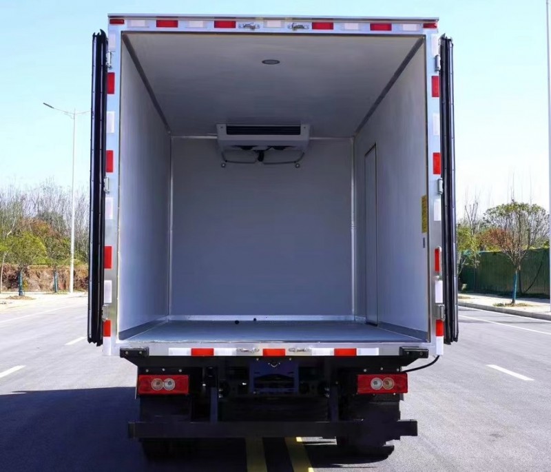 廂體采用真空吸附、液壓吸附一體成型生產(chǎn)線制造,三明治復(fù)合粘接,箱體內(nèi)部選裝地板通風(fēng)槽,副駕駛邊選裝單側(cè)門,對開雙側(cè)門,頂部選裝運(yùn)輸鮮肉運(yùn)輸?shù)娜忏^導(dǎo)軌,用于牛羊肉冷鏈運(yùn)輸??蛇x裝用于藥品,疫苗運(yùn)輸?shù)奈迕嫱L(fēng)槽,溫濕度記錄儀等專用設(shè)備。制冷設(shè)備可選裝國產(chǎn)颶豐,凱利-15度冷凍制冷機(jī)組,可選裝進(jìn)口開利,冷王冷凍制冷機(jī)組,最低溫度可達(dá)-18噸,可根據(jù)運(yùn)輸貨物要求進(jìn)行溫度調(diào)節(jié)。
