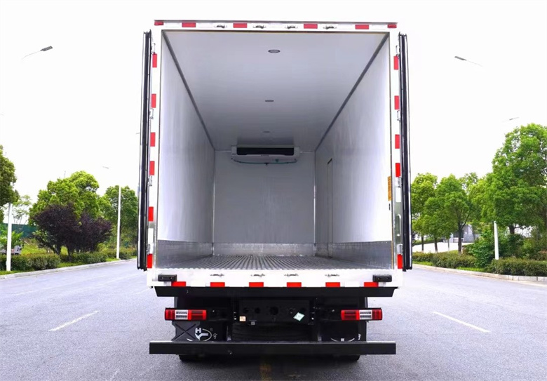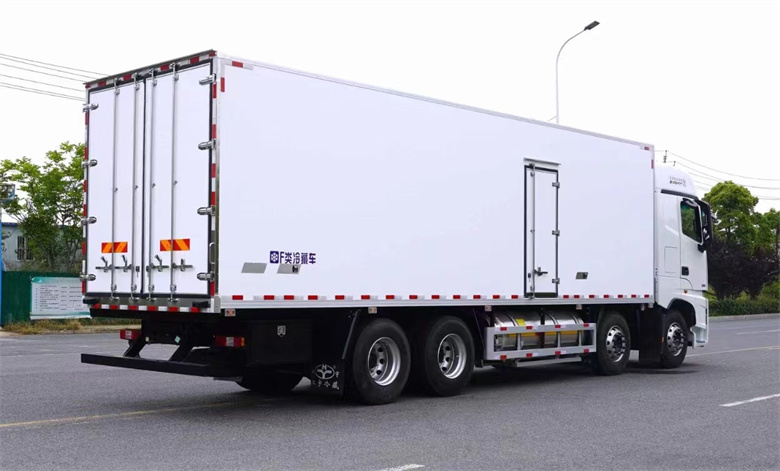 歐曼星輝前四后八9米6燃?xì)饫洳剀嚇?biāo)準(zhǔn)配置:冷藏箱體內(nèi)尺寸9350x2450X2500(mm), 《颶豐第四代標(biāo)準(zhǔn)化生產(chǎn)冷藏廂體》采用斷橋隔熱設(shè)計降低導(dǎo)熱;榫卯合箱技術(shù),整體框架結(jié)構(gòu),牢固耐用;全密封雙組合聚氨酯膠粘連保溫效果持久;廂體保溫板厚度為200px;不銹鋼包角;鋁合金包邊;廂體內(nèi)部采用LED照明燈及廂體示寬燈;后門框為加厚不銹鋼門飾;密封條為三元乙丙橡膠黑色密封條(新款5葉片帶鋁合金壓條)后門+側(cè)門為全包圍密封條;側(cè)門框為絕熱PVC+加厚不銹鋼材質(zhì);廂體內(nèi)前端加裝2個排水孔;2個防撞膠塊;副梁整體為輕量化高強(qiáng)鋼;壓板+U型栓+橡膠鋼絲墊皮+護(hù)網(wǎng)+擋泥板+3M反光膠板為標(biāo)準(zhǔn)件;制冷設(shè)備選裝開利或冷王獨立制冷機(jī)組。