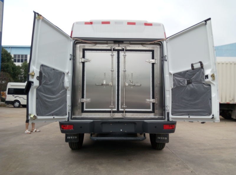 1、采用國際流行的輕型冷藏保溫運輸車保溫廂體設計,在保持依維柯原車身外形風格的情況下,內膽保溫廂體一體式模塊化,整體拼裝,無冷橋設計,不但與車身完美結合,還有效提高隔熱性能;