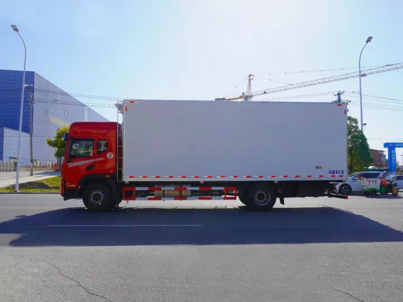 冷藏車(chē)箱體是采用國(guó)際通用三明治工藝+我廠(chǎng)專(zhuān)利木質(zhì)工藝(龍骨連接鑲?cè)氕h(huán)保防水木材起保溫耐腐蝕作用)、斷橋隔熱技術(shù),生產(chǎn)線(xiàn)是國(guó)際最先進(jìn)18米大型復(fù)合板材生產(chǎn)線(xiàn),壓板臺(tái)面生產(chǎn)前機(jī)器自動(dòng)吸塵干凈,保證壓板機(jī)一次壓制成型,其生產(chǎn)設(shè)備及技術(shù)均領(lǐng)先同行業(yè)標(biāo)準(zhǔn),箱體外形美觀(guān),整體質(zhì)量輕,強(qiáng)度高,無(wú)滲漏特點(diǎn),箱體堅(jiān)固耐用,保溫效果高,保溫效果達(dá)到國(guó)家A級(jí)標(biāo)準(zhǔn)。箱體內(nèi)部選裝肉鉤導(dǎo)軌,地板通風(fēng)槽,溫濕度記錄儀等專(zhuān)用設(shè)備。制冷設(shè)備選裝國(guó)產(chǎn)或進(jìn)口冷機(jī),最低溫度可達(dá)-15度??筛鶕?jù)實(shí)際需求進(jìn)行調(diào)節(jié)。