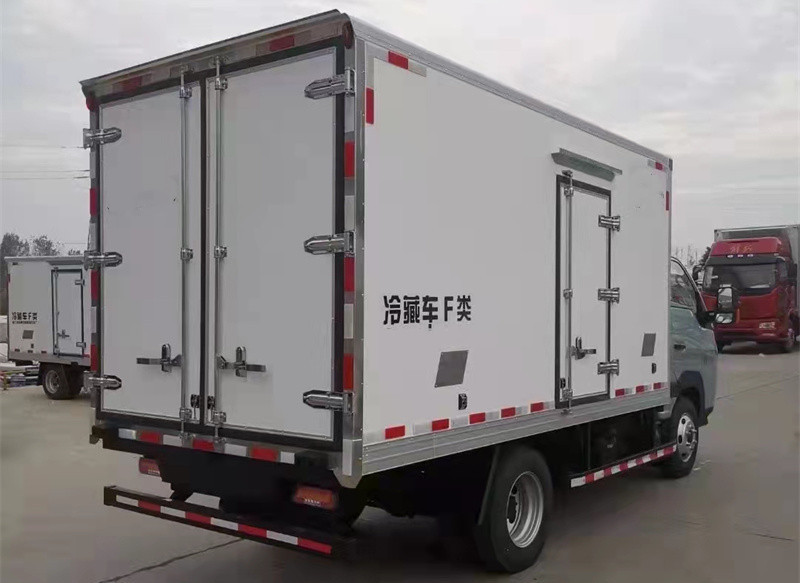 冷藏車箱體是采用國際通用三明治工藝+我廠專利木質(zhì)工藝(龍骨連接鑲?cè)氕h(huán)保防水木材起保溫耐腐蝕作用)、斷橋隔熱技術(shù),生產(chǎn)線是國際最先進18米大型復(fù)合板材生產(chǎn)線,壓板臺面生產(chǎn)前機器自動吸塵干凈,保證壓板機一次壓制成型,其生產(chǎn)設(shè)備及技術(shù)均領(lǐng)先同行業(yè)標(biāo)準(zhǔn),箱體外形美觀,整體質(zhì)量輕,強度高,無滲漏特點,箱體堅固耐用,保溫效果高,保溫效果達到國家A級標(biāo)準(zhǔn)。箱體內(nèi)部選裝地板通風(fēng)槽,溫濕度記錄儀,肉鉤導(dǎo)軌,攔貨槽等專用設(shè)備。制冷設(shè)備可選裝進口開利,冷王機組,選裝國產(chǎn)凱利,颶豐,華泰等機組,最低溫度可達-15度,可根據(jù)運輸貨物的要求進行調(diào)節(jié)。