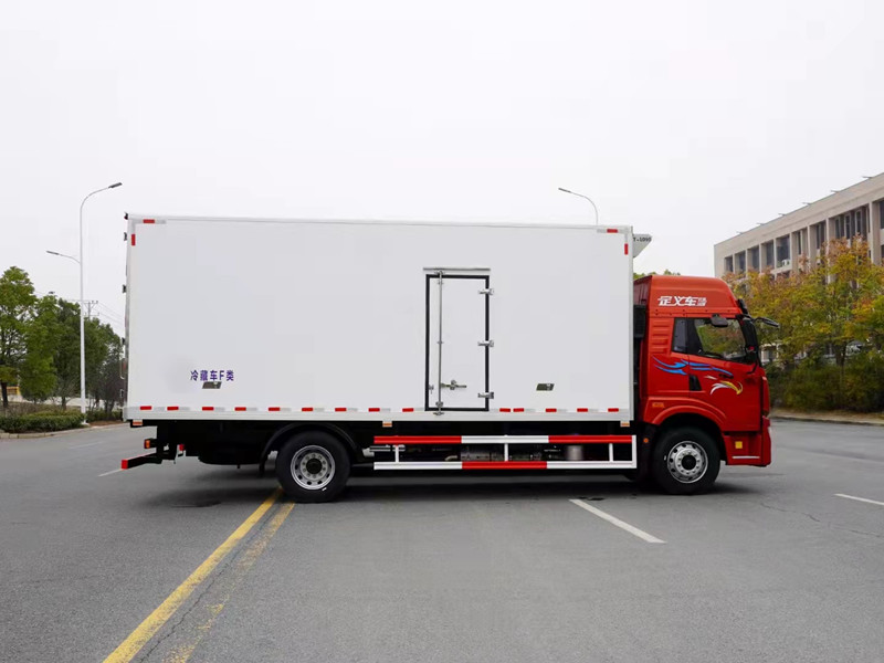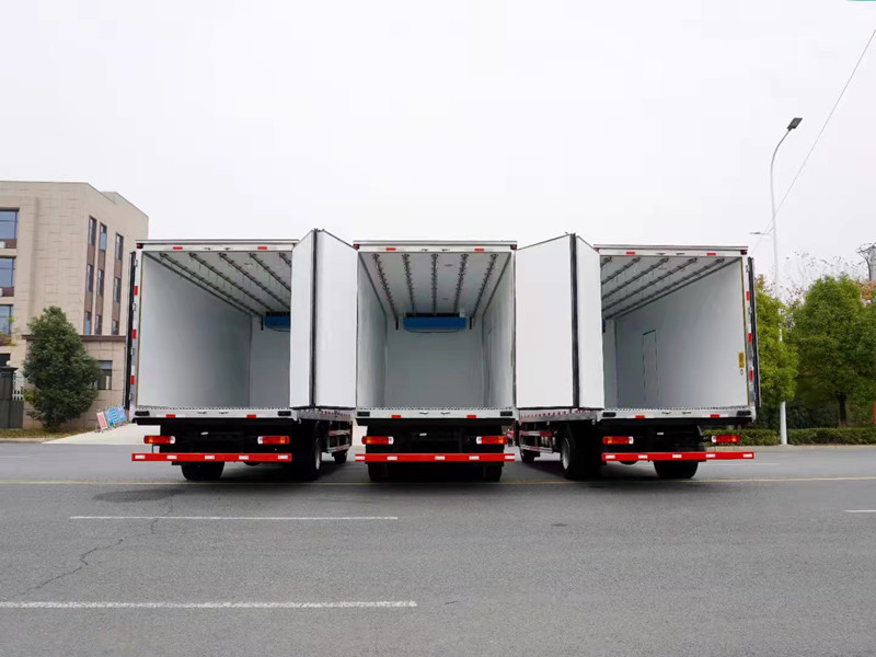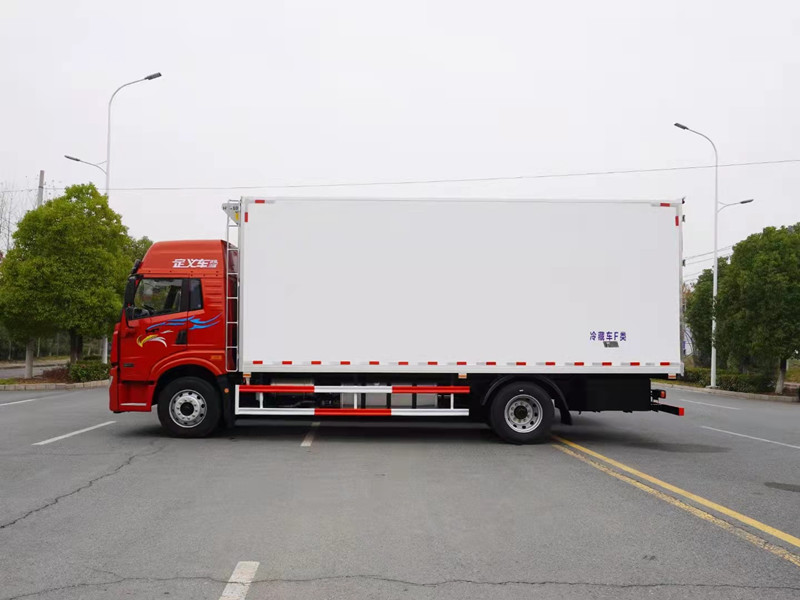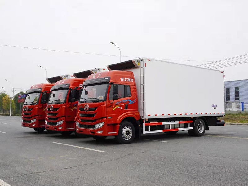 冷藏車箱體是采用國際通用三明治工藝+我廠專利木質(zhì)工藝(龍骨連接鑲?cè)氕h(huán)保防水木材起保溫耐腐蝕作用)、斷橋隔熱技術!生產(chǎn)線是國際最先進18米大型復合板材生產(chǎn)線,壓板臺面生產(chǎn)前機器自動吸塵干凈,保證壓板機一次壓制成型,其生產(chǎn)設備及技術均領先同行業(yè)標準,箱體外形美觀,整體質(zhì)量輕,強度高,無滲漏特點,箱體堅固耐用,保溫效果高,保溫效果達到國家A級標準。選裝國產(chǎn)非獨立冷機,選裝進口開利或冷王獨立制冷機組。最低溫度可達-18度,可根據(jù)需求進行調(diào)節(jié)。